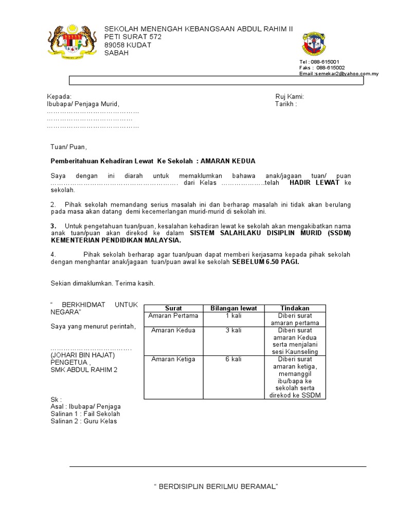 Surat Amaran Lewat Hadir Ke Sekolah Amaran Ke 2 Pdf